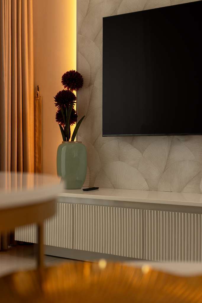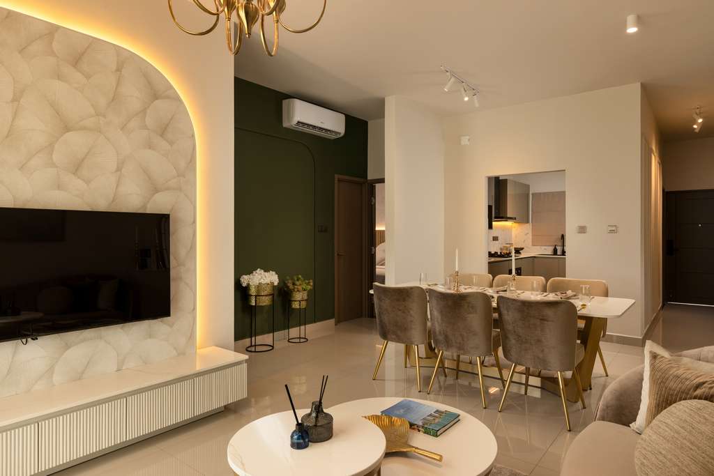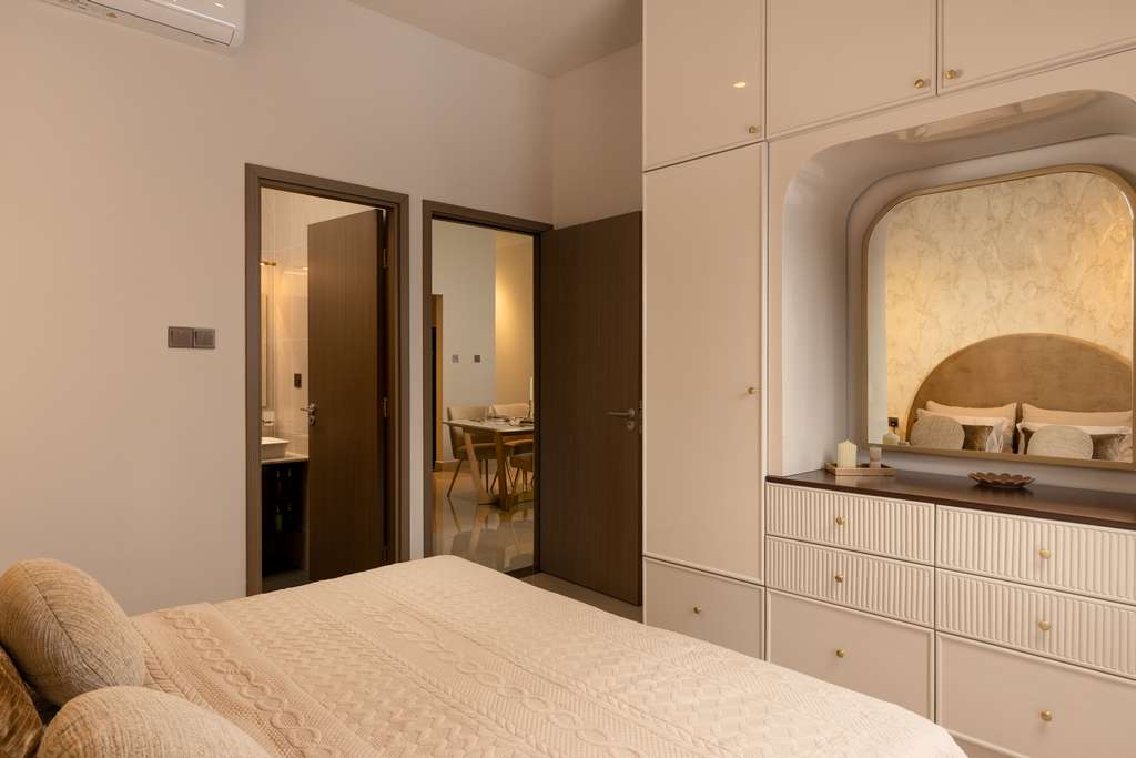 The interior concept draws inspiration from international resort residences, focusing on calm, timeless design that enhances both comfort and lifestyle. A neutral colour palette, clean lines, and warm textures form the foundation of the interiors, allowing natural light and lagoon views to take centre stage. The overall design approach creates spaces that feel elegant, open, and inviting perfectly suited for both relaxation and entertaining.