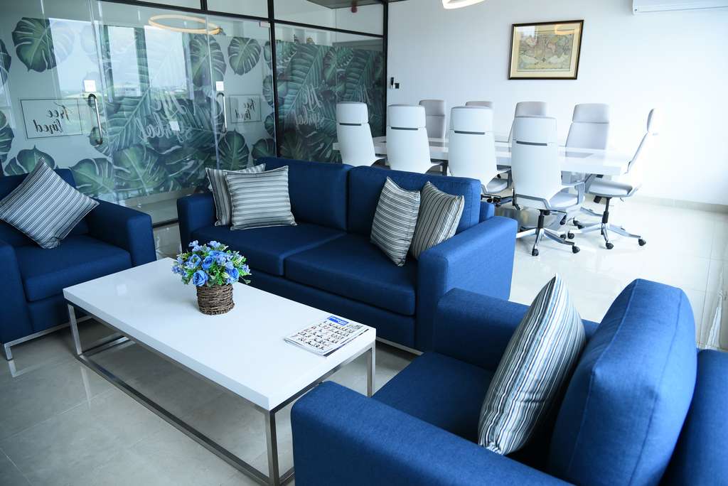 Our design solution for this executive workspace seamlessly merges professional functionality with a relaxing feel. We paired our custom manufactured, minimalist wooden desks and storage units with plush, ergonomic lounge seating to create a balanced environment that supports both focused work and informal collaboration. The aesthetic is defined by a warm, organic palette of natural timber and soft neutral fabrics, accented by clean lines and integrated greenery to promote a sense of calm and productivity.